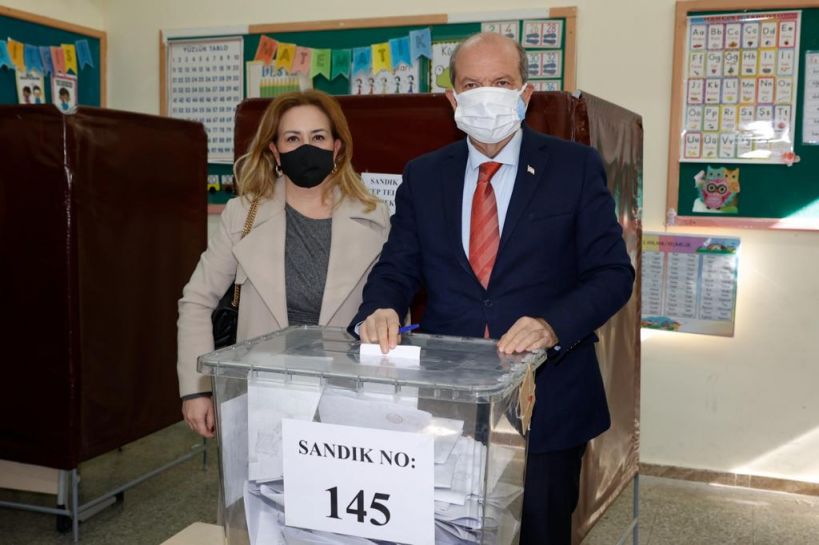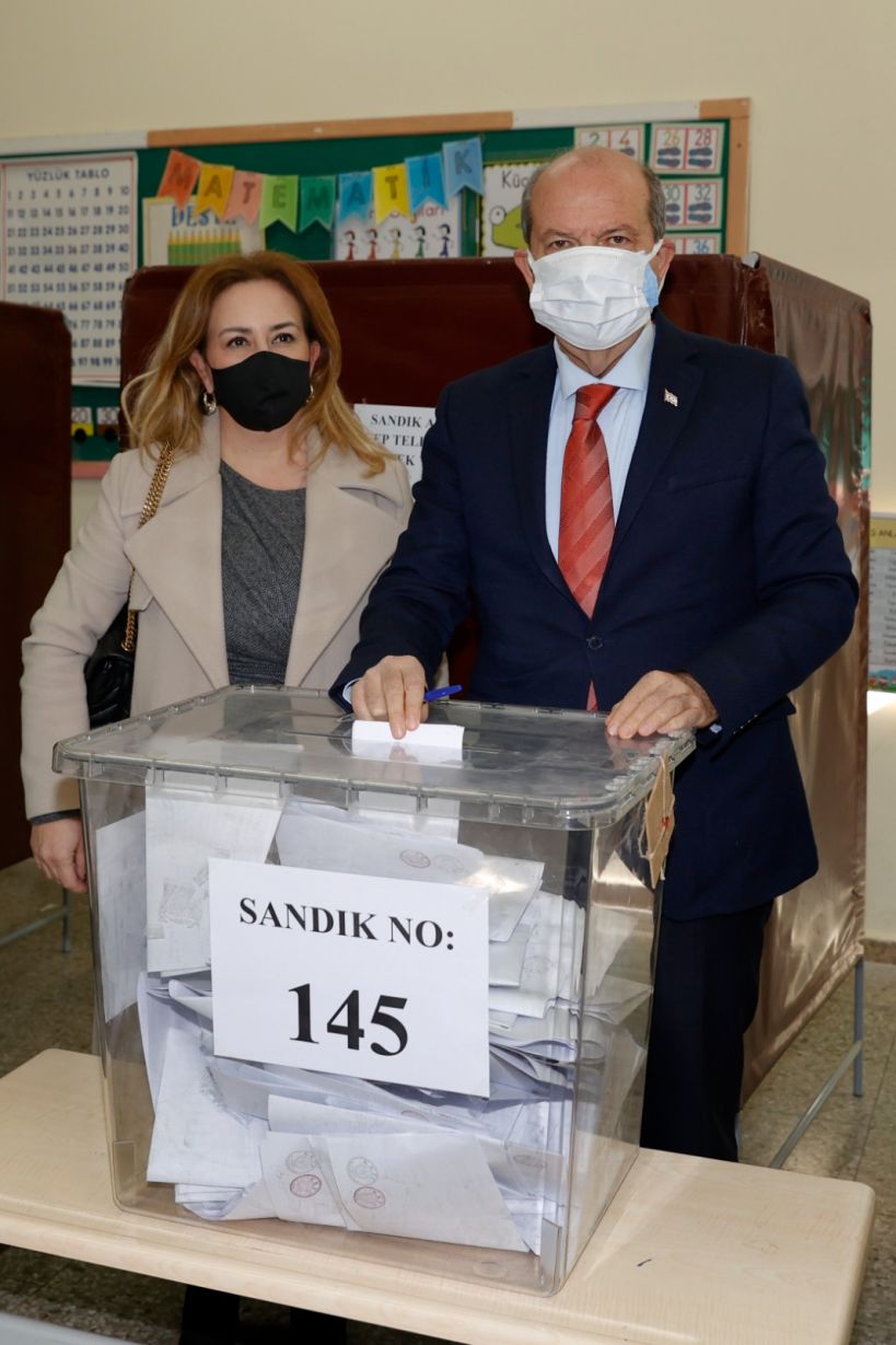 Cumhurbaşkanı Ersin Tatar ve eşi Sibel Tatar, Lefkoşa Şehit Tuncer İlkokulu’nda 145 numaralı sandıkta oylarını kullandı.