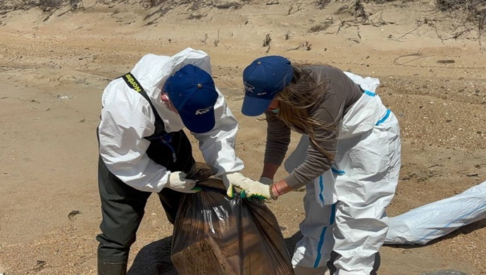 Волонтёры лагеря «Единой России» «Черноморский рубеж» собрали почти две тысячи тонн загрязнённого песка на Бугазской косе