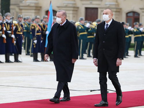 Cumhurbaşkanı Erdoğan, Azerbaycan Gençlik Sarayı’nda resmî törenle karşılandı