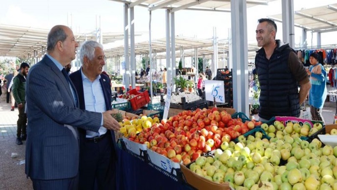 Cumhurbaşkanı Ersin Tatar, Güzelyurt bölgesindeki açık pazarı ziyaret ederek esnaf ve vatandaşlarla buluştu