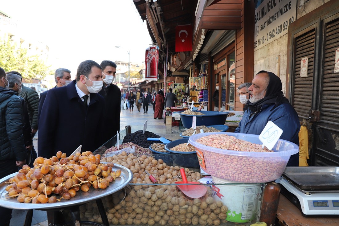 Karaköprü Belediye Başkanı Metin Baydilli, İlçe Başkanı Ağan ile Çarşı Esnafına Hayırlı işler ziyareti