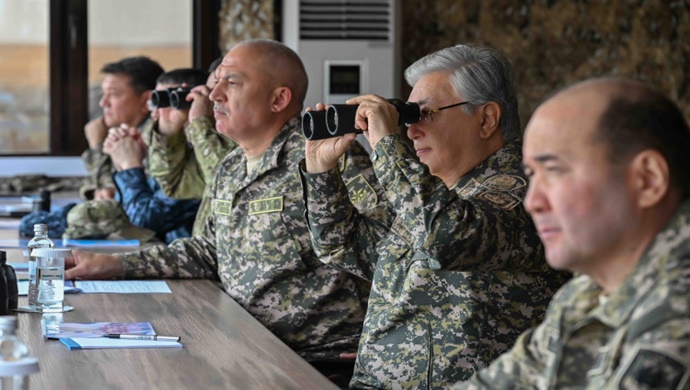 Devlet başkanı Batyl toytarys-2023 stratejik komuta ve personel askeri tatbikatlarını ziyaret etti