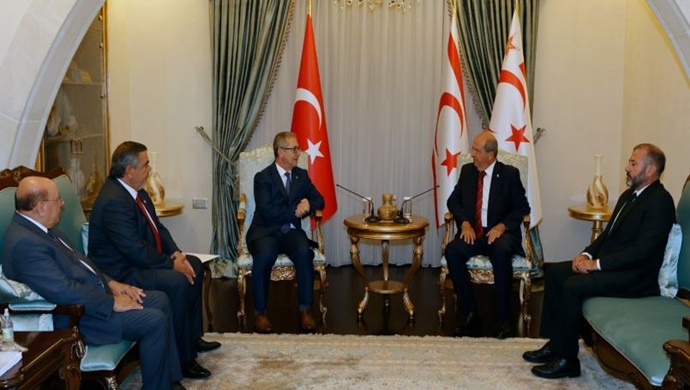 Cumhurbaşkanı Ersin Tatar, Hüseyin Kayımzade başkanlığındaki Karaoğlanoğlu Spor Kulübü yönetimini kabul ederek görüştü