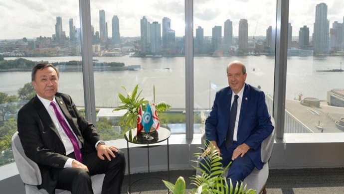 New York’ta bulunan Cumhurbaşkanı Ersin Tatar, Türk Devletleri Teşkilatı Genel Sekreteri Kubaniçbek Ömüraliyev’i kabul etti