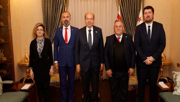 Cumhurbaşkanı Ersin Tatar, Türkiye Cumhuriyeti Dışişleri Bakanlığı İkili Siyasi İşler ve Denizcilik- Havacılık- Hudut Genel Müdürü Büyükelçi Burak Özügergin ve beraberindekileri kabul etti