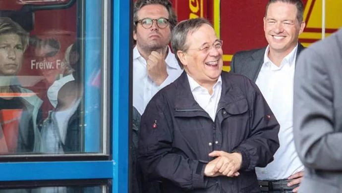 ALMANYA’DA BAŞBAKAN ADAYI LASCHET’İN SEL FELAKETİNİN OLDUĞU YERİ ZİYARETİ SIRASINDA KAHKAHA ATMASINA BÜYÜK TEPKİ YAĞDI!